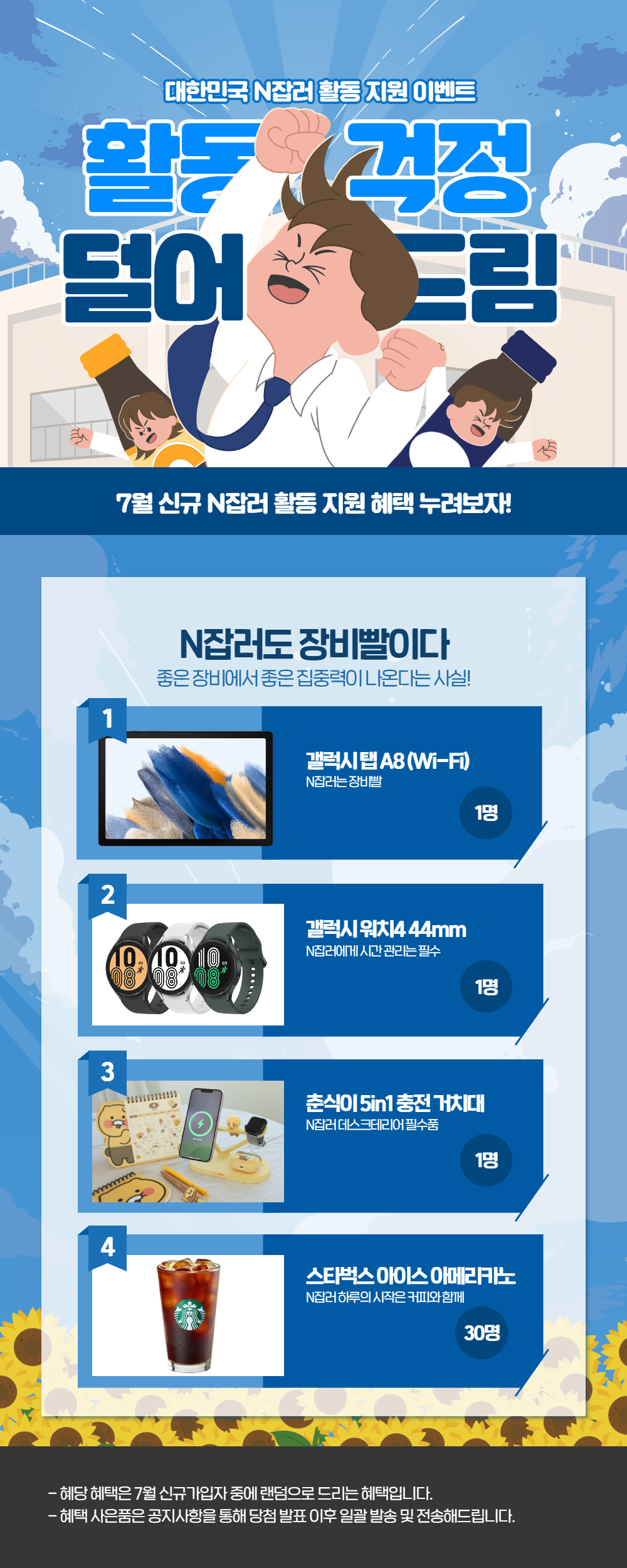 [종료] [종료] 7월 신규 N잡러 활동 지원 혜택 누려보자! 페이지 정보 작성자 작성일2023-07-03 17:00 조회 1,237 목록 본문 7월 신규 N잡러 이벤트를 소개해드립니다. 혜당 혜택은 7월 신규가입자 중에 랜덤으로 드리는 혜택입니다.혜택 사은품은 공지사항을 통해 당첨 발표 이후일괄 발송 및 전송해드립니다. 추가적으로 전체 N잡러분들을 위한 이벤트는준비중이니 기대해주세요. 감사합니다. 목록