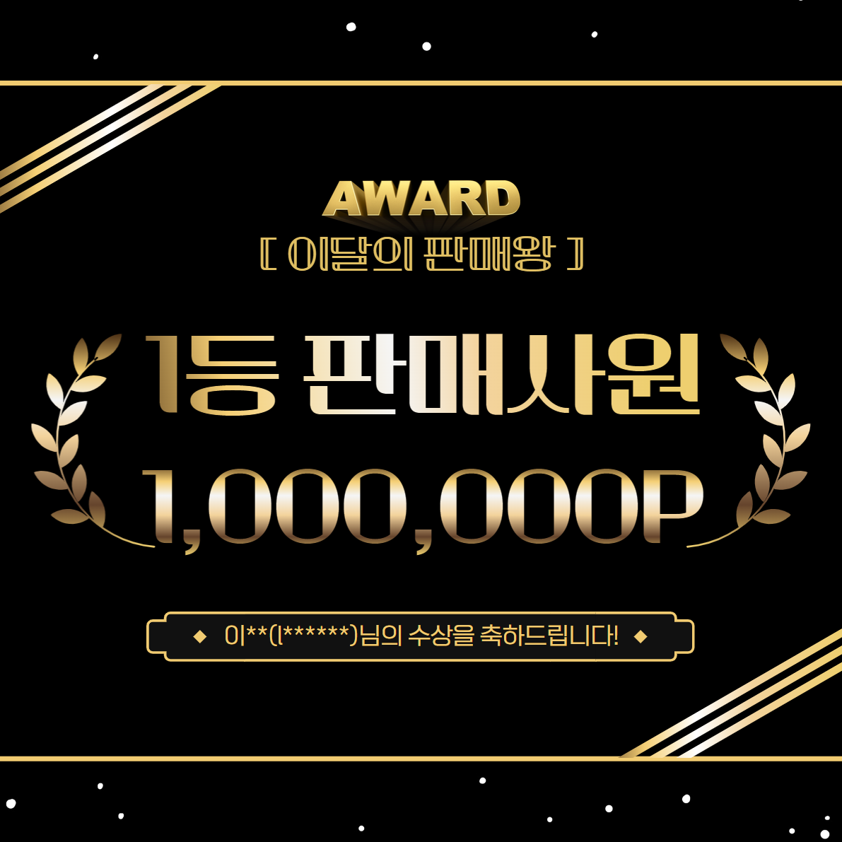[당첨자발표] [선정자 발표] 6월의 마켓 셀러 페이지 정보 작성자최고관리자 작성일2024-07-15 16:24 조회 234 목록 본문 100만원 매출 달성자 7분 중 최고 매출 달성자 이**님 축하드립니다. 포인트는 2024년 7월 15일 지급되었습니다. 많은 참여 감사합니다. 목록