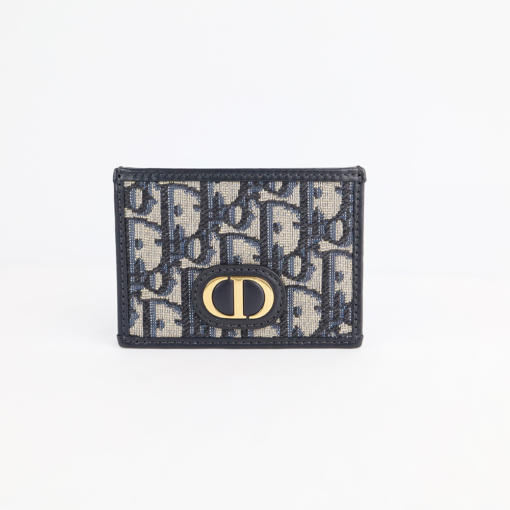 디올 새들 플랩 카드 홀더 블루 디올 오블리크 자카드 (A)