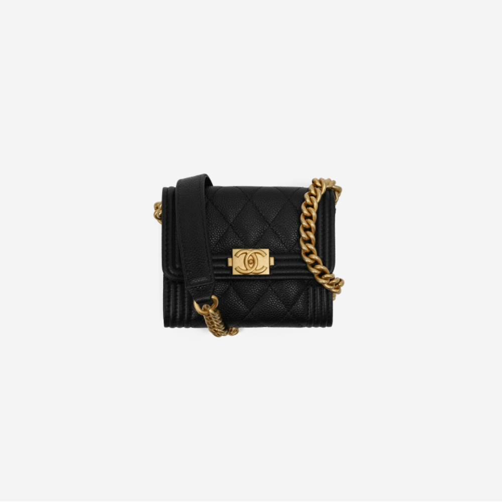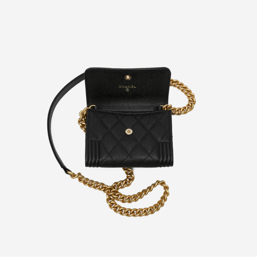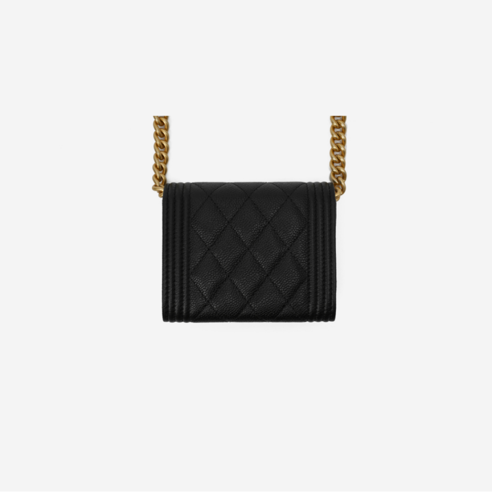 샤넬 보이 샤넬 플랩 체인 코인 지갑 그레인드 카프스킨 & 골드 메탈 블랙