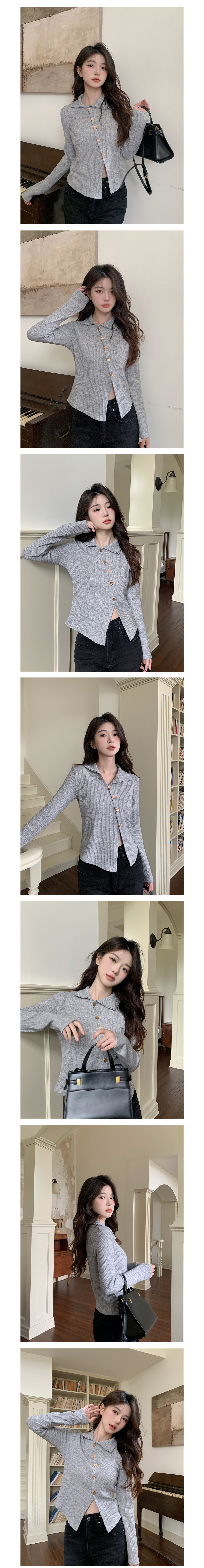 여성 카라 슬림 골지 라인 골지 니트 가디건